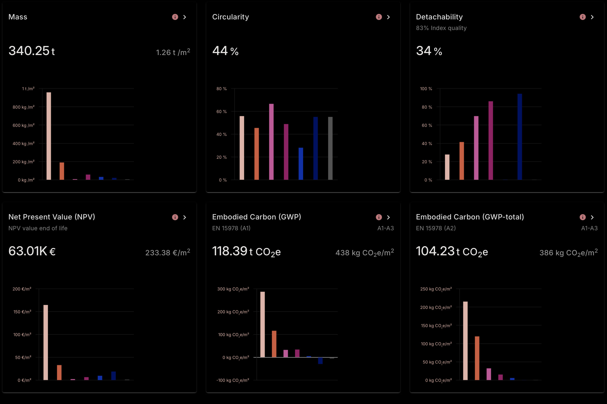 Madaster ist eine leistungsstarke digitale Plattform für das Ressourcenmanagement von Gebäuden und die Förderung des zirkulären Bauens. Durch das Hochladen von BIM- (IFC) oder Excel-Dateien für Neubauten oder Bestandsobjekte können automatisch Materialpässe erstellt werden, die mit Daten zu Zirkularität, Nachhaltigkeit und finanziellem Wert angereichert sind. Madaster verknüpft die importierten Daten mit umfangreichen Datenbanken, um gebundene und betriebliche CO₂-Emissionen zu berechnen und umfassende Lebenszyklusanalysen zu ermöglichen.
