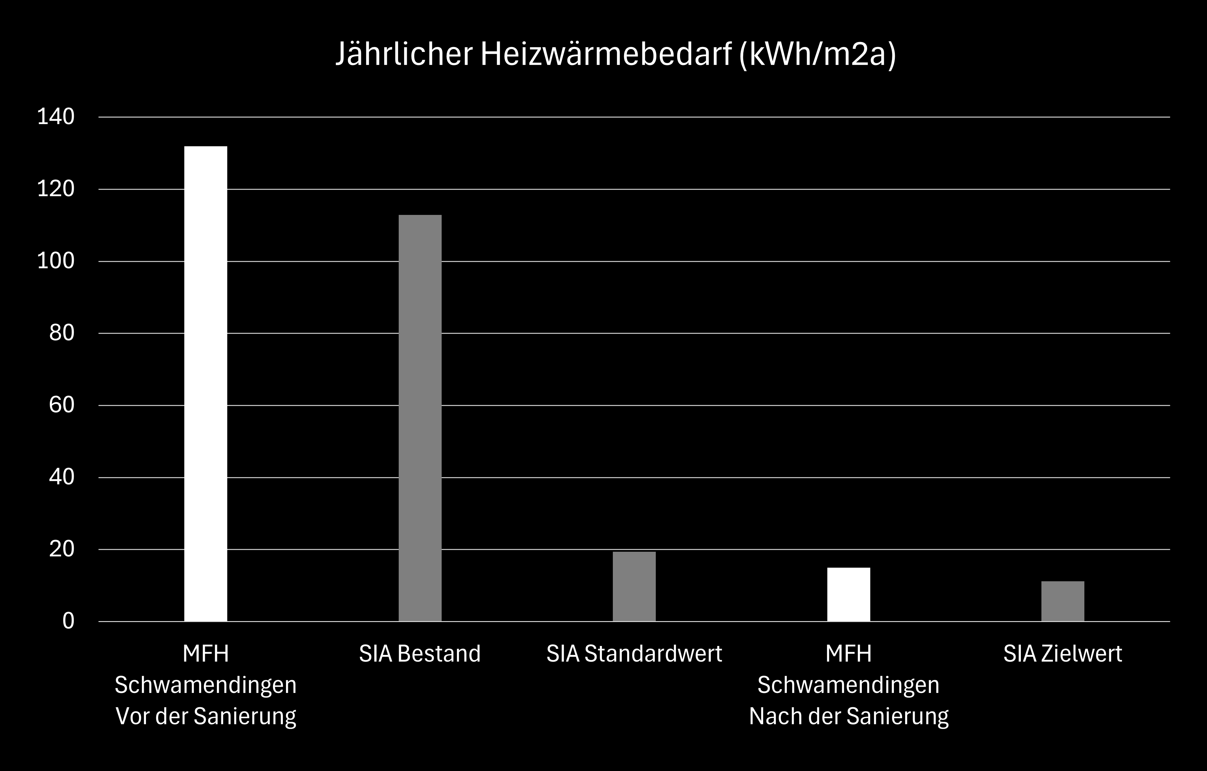 Die Reduktion des Energieverbrauchs pro Energiebezugsfläche zeigt, dass die Sanierung nicht nur die absoluten Verluste minimiert, sondern auch die Energieeffizienz der gesamten Nutzfläche erheblich steigert. Das Gebäude erreicht damit einen energetischen Standard, der dem eines modernen, gut gedämmten Neubaus entspricht, und verbessert zugleich seinen thermischen Komfort sowie die Betriebskostenbilanz.