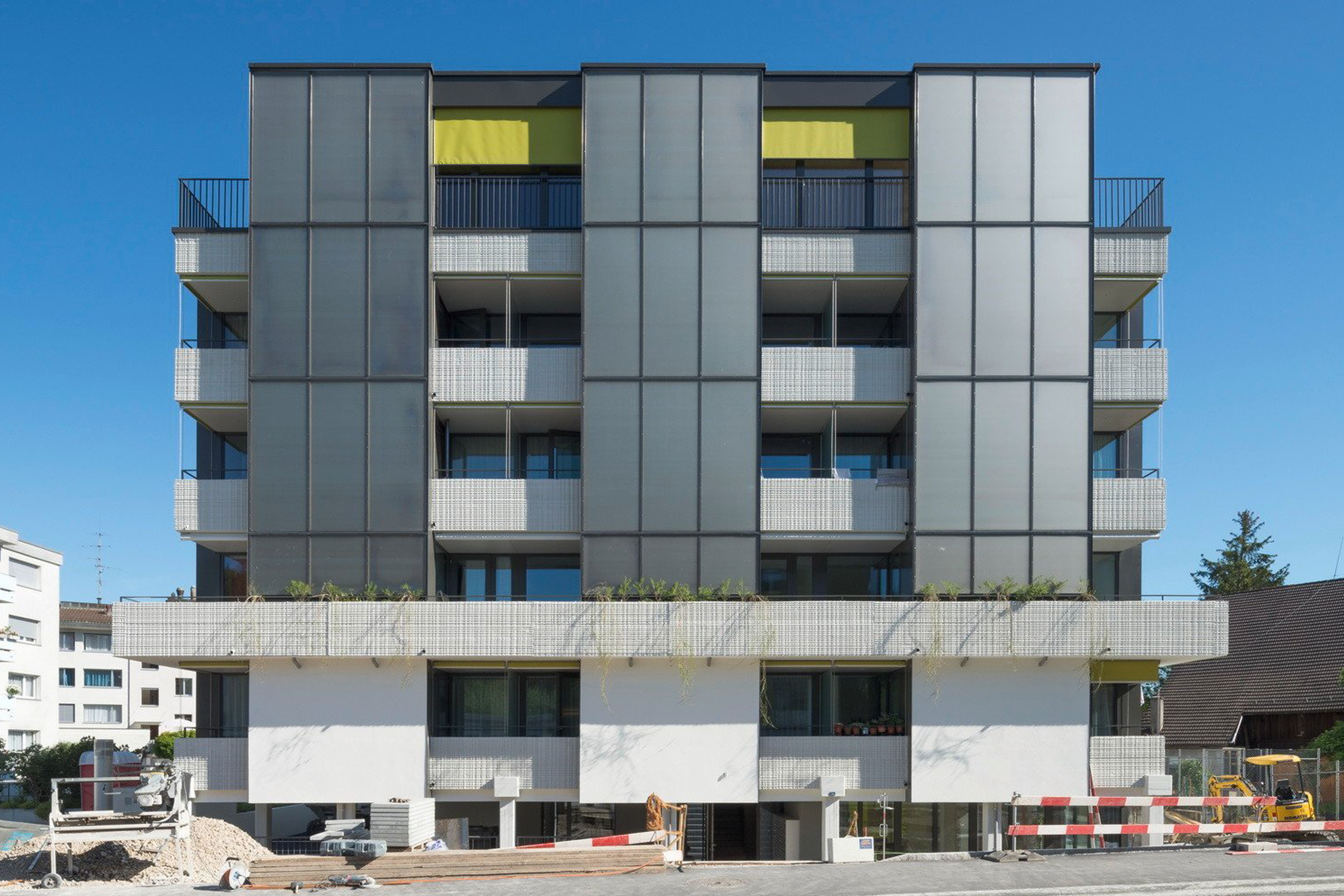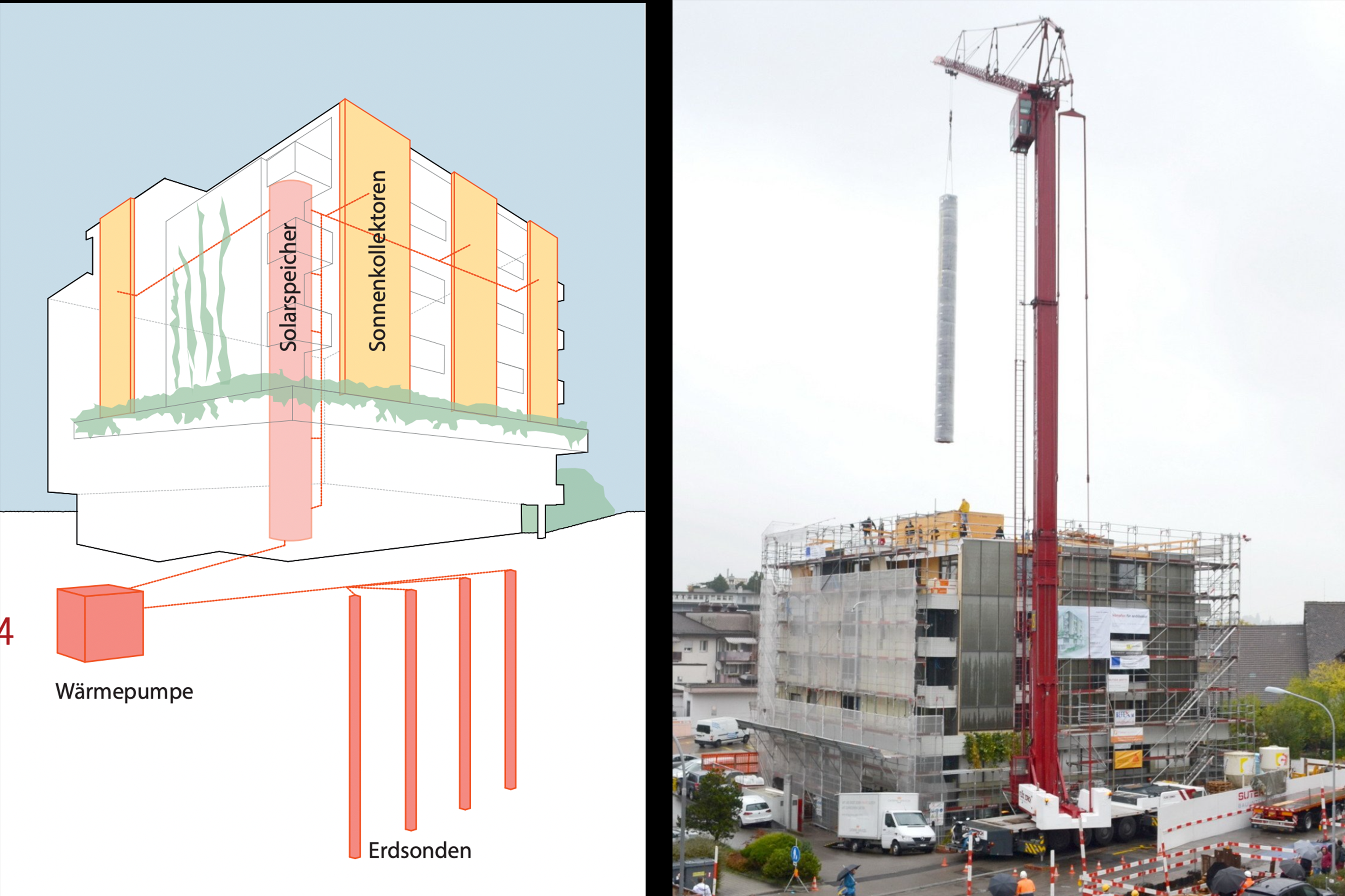 Die Solarkollektoren an der Fassade erreichen dabei einen hohen solaren Deckungsgrad von 74.5 % für Warmwasser und Heizung, was die Effizienz dieser Lösung zusätzlich unterstreicht.